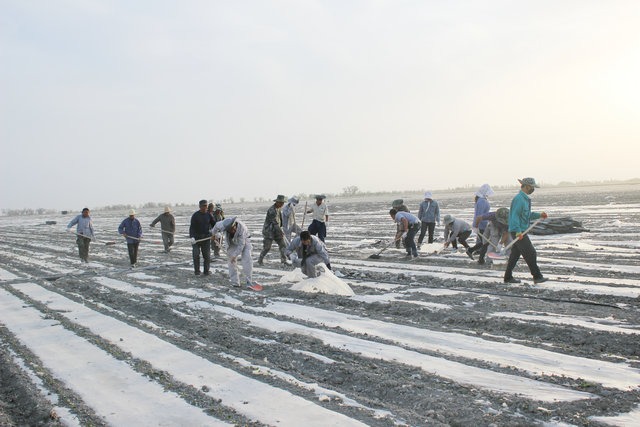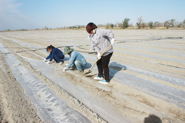 將它們一根一根的捋順,再一根一根的拖到接口處,仔細琢磨出連接的技巧,把方法教給大家,使大家很快掌握了滴管帶復位的方式方法。 因為缺少勞動(dòng)工具,鋪膜復位工作中,管技人員黨利虎用手一捧一捧的把土覆在薄膜上,指頭漸漸出現了血痕,但是絲毫也沒(méi)有減弱他十足的干勁。每個(gè)人都在為團場(chǎng)生產(chǎn)建設盡自己的綿薄之力,大家相互之間你追我趕,盡心盡力的干著(zhù)。