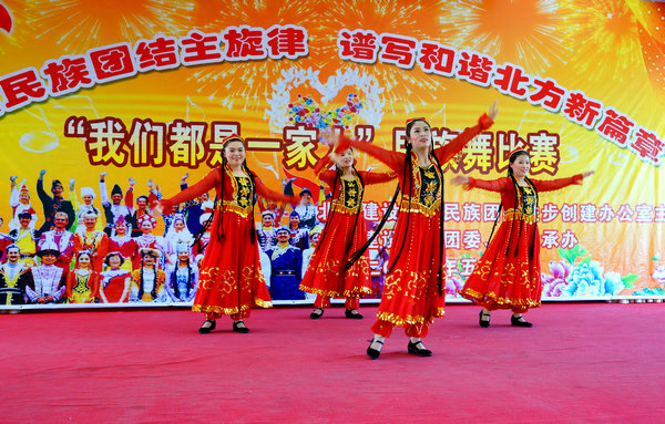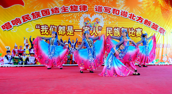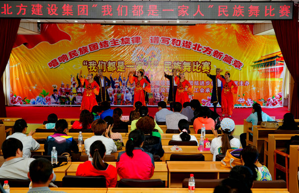 (通訊員:孟慶忠)絢麗的服裝、優(yōu)美的舞姿、歡快的音樂(lè )、濃郁的民族氣息。5月17日下午,由北方建設集團民族團結進(jìn)步創(chuàng )建辦公室主辦、集團公司團委、工會(huì )承辦的以“唱響民族團結主旋律、譜寫(xiě)和諧北方新篇章”為主題的“我們都是一家人”民族舞比賽在機關(guān)五樓會(huì )議室拉開(kāi)帷幕。