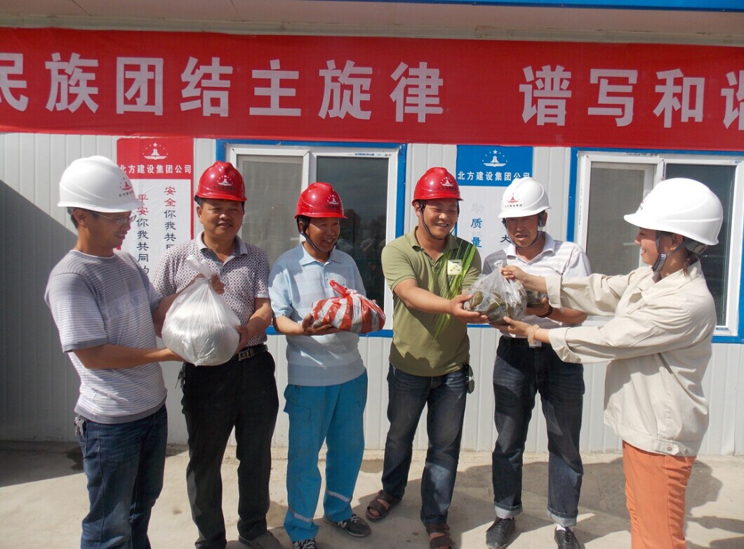 據悉,為使奮戰在一線(xiàn)管技人員和勞務(wù)人員渡過(guò)一個(gè)開(kāi)心的節日,該公司組織辦公室人員開(kāi)展“高高興興過(guò)節,開(kāi)開(kāi)心心吃粽子”主題包粽子活動(dòng);并前往五五工業(yè)園項目部、129團項目部和天北新區項目部,為20多名項目管技人員和200多名勞務(wù)人員送去了粽子、大肉、綠豆和白糖等慰問(wèn)品,同時(shí),囑托項目人員和勞務(wù)人員做好防暑降溫措施。