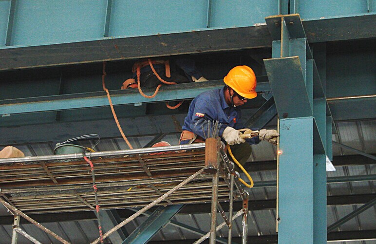 在施工過(guò)程中,為保證工程質(zhì)量,管技人員盡職盡責,堅守工作崗位,全力配合鋼結構施工的進(jìn)度。工人施工中嚴格遵守操作規程,在保證施工質(zhì)量的同時(shí)也高度保證了施工安全。