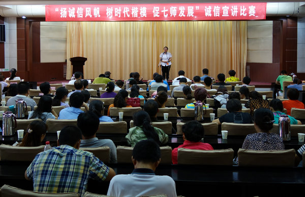 (通訊員 唐新云)821,由師宣傳部、工會(huì )聯(lián)合舉辦的“揚誠信風(fēng)帆、樹(shù)時(shí)代楷模、促七師發(fā)展”宣講決賽在師機關(guān)二樓舉辦。北方建設集團的參賽選手孫虞明月以總分9.61排名第一,獲得了師誠信宣講一等獎。