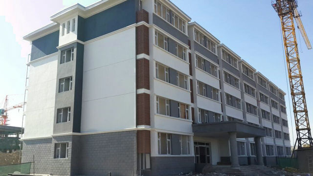 圖為:油建分公司129春光油田五五新鎮隊點(diǎn)建設工程公寓樓外裝修已完成
