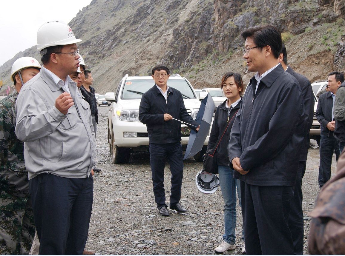 新疆維吾爾自治區黨委書(shū)記張春賢視察巴里坤哈薩克自治縣二道溝水庫工程現場(chǎng),聽(tīng)取了北方集團總經(jīng)理丁午育對工程進(jìn)展情況的匯報。
