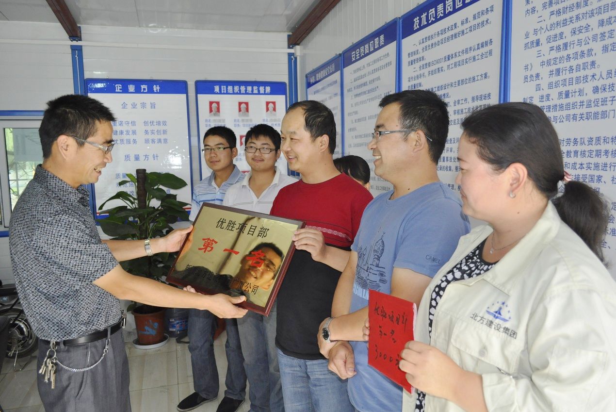 圖為該公司對在勞動(dòng)競賽中涌現出來(lái)的優(yōu)勝項目部和優(yōu)秀個(gè)人進(jìn)行表彰獎勵。