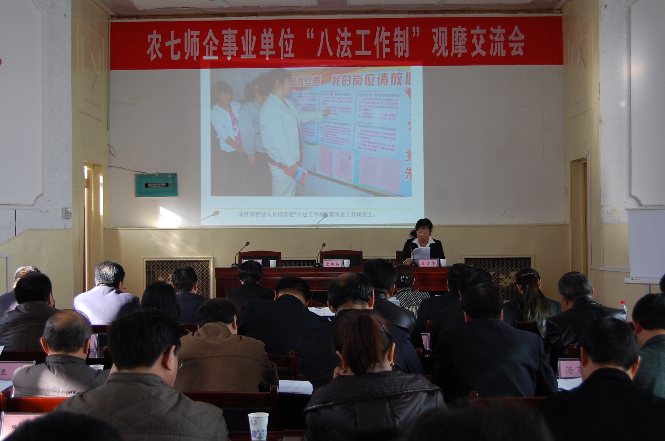 為進(jìn)一步抓好“八法工作制”在師直企事業(yè)單位的有效落實(shí),115日,七師組織召開(kāi)了“八法工作制”現場(chǎng)觀(guān)摩交流會(huì ),七師副政委景建英、組織部領(lǐng)導以及各師直企事業(yè)單位領(lǐng)導和政工部門(mén)負責人參加了此次會(huì )議。