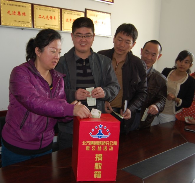 根據集團公司團委“希望工程1元捐”通知要求,北方建設集團路橋公司團委認真領(lǐng)會(huì )通知精神,積極召開(kāi)了宣傳動(dòng)員工作會(huì )議,組織團員青年開(kāi)展了 “希望工程1元捐微公益活動(dòng),為希望工程奉獻愛(ài)的力量,在全公司上下?tīng)I造了人人公益、助人自助的公益文化氛圍。(通訊員虞俐瑾 周啟航)