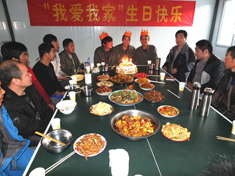 在生日宴會(huì )上,新分配來(lái)的幾位大學(xué)生紛紛表示:“在野外工地上,我們找到了家的感覺(jué),一定不辜負領(lǐng)導的希望,盡早融入到工作中去”。(三部 王清軍)