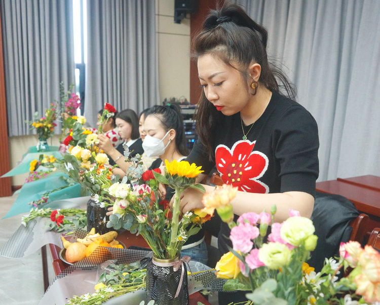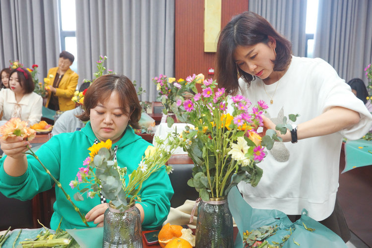 活動(dòng)中,花藝老師為大家介紹了鮮花常識、色彩搭配、插花技巧、保鮮方法等注意事項,對插花的技巧進(jìn)行現場(chǎng)講解和演示。在老師的耐心指導下,大家認真挑選花材、構思造型,選花、去葉、剪接、設計、插花,在一剪一修間,體會(huì )插花的樂(lè )趣。一盆盆細致精美、別出心裁的插花作品展現在大家的面前,充分展示著(zhù)女職工熱愛(ài)生活、昂揚向上、追求真善美的精神風(fēng)貌。在場(chǎng)的每個(gè)人臉上都洋溢著(zhù)幸福燦爛的笑容。