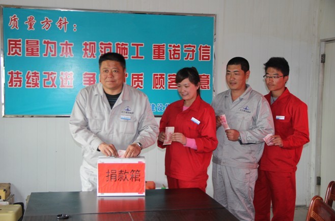 4月8日,第十五項目部在中哈霍爾果斯河友誼聯(lián)合引水樞紐工程項目施工工地,為去年分配來(lái)十五項目部工作的大學(xué)生包愛(ài)珍患白血病的母親舉行捐款儀式。包愛(ài)珍自去年分配到十五項目部來(lái),吃苦耐勞、勤奮好學(xué),得到了項目部領(lǐng)導和同事的首肯。在得知家在甘肅農村包愛(ài)珍母親患白血病后,項目部黨支部經(jīng)過(guò)研究決定,為包愛(ài)珍母親捐款。當天十五項目部十一人共捐款2100元。包愛(ài)珍也表示要珍惜領(lǐng)導和同事的關(guān)心,繼續勤奮工作,以自己的實(shí)際行動(dòng)報答領(lǐng)導和同事的關(guān)懷。(晁震)