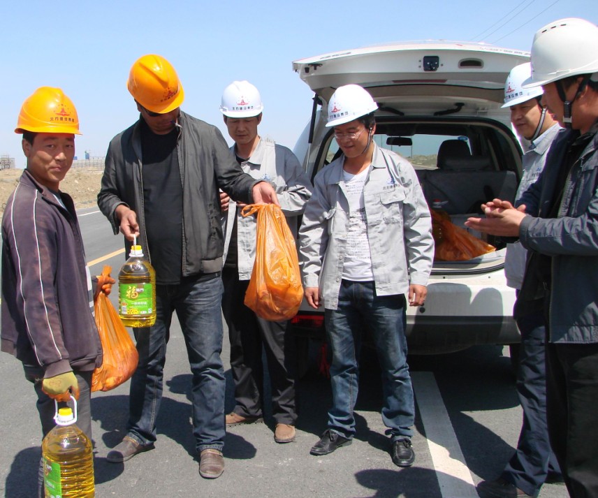 429上午艷陽(yáng)高照,北方建設集團電氣設備安裝公司黨支部和工會(huì ),在“五一勞動(dòng)節”來(lái)臨的前夕,帶著(zhù)分公司全體管技人員的關(guān)心和問(wèn)候,把清油、豬肉等慰問(wèn)品送到節日期間仍堅持奮戰在施工一線(xiàn)的工人和勞務(wù)工的手里。(楊翠萍)