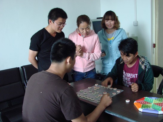 53,北方建設集團電氣設備安裝公司團支部活動(dòng)室內,充滿(mǎn)了歡聲笑語(yǔ)。這是電氣設備安裝公司團支部在舉行喜迎 “五四青年節”棋類(lèi)友誼賽活動(dòng)。(楊翠萍)