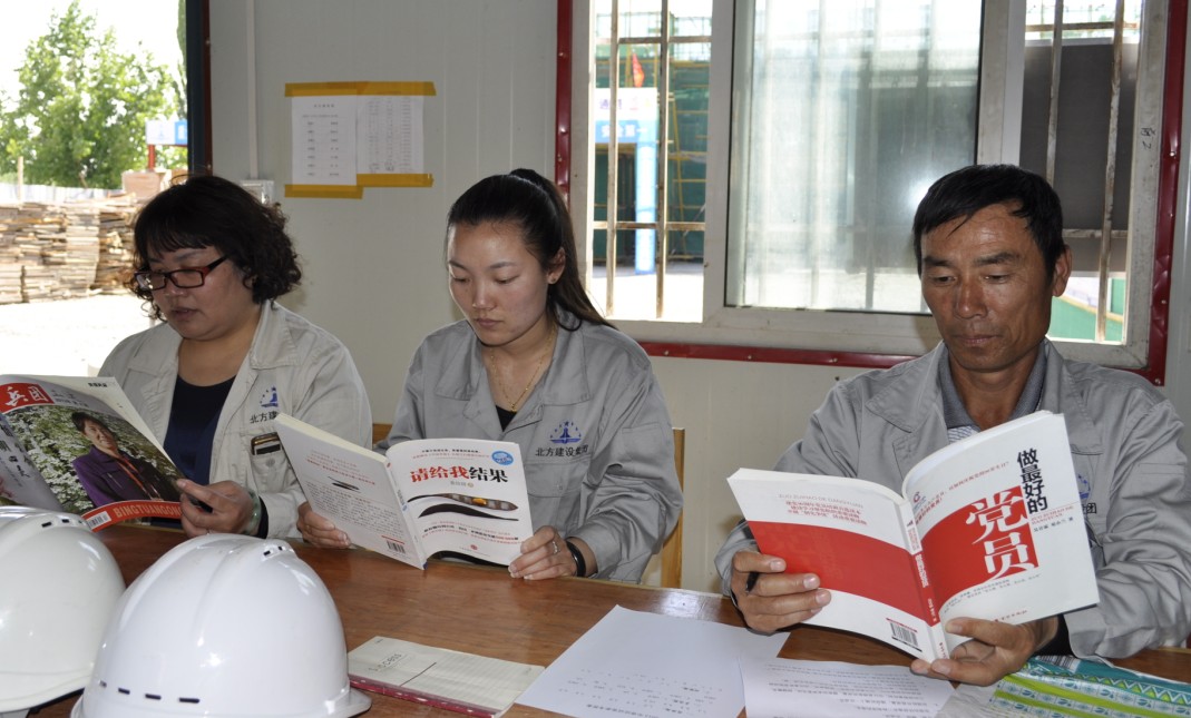 圖為廣廈公司131高層208項目部管技人員正在閱讀