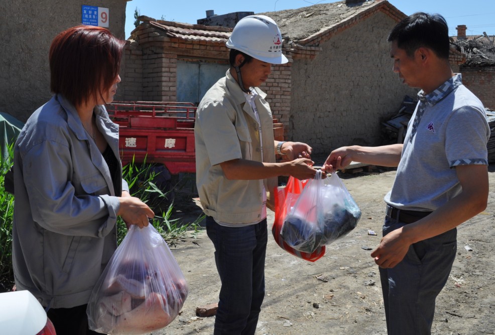 圖為廣廈公司為106項目部發(fā)放粽子和大肉