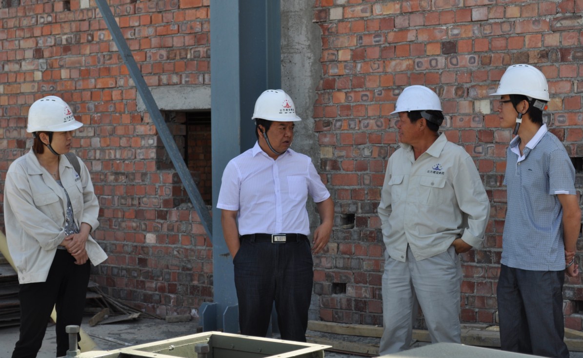 在施工現場(chǎng),該項目經(jīng)理鄭新華向黨委書(shū)記、董事長(cháng)馮立匯報了工程進(jìn)度、安全管理、勞務(wù)工管理等工作。