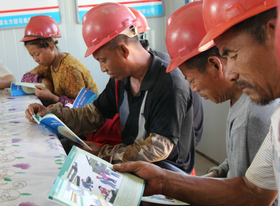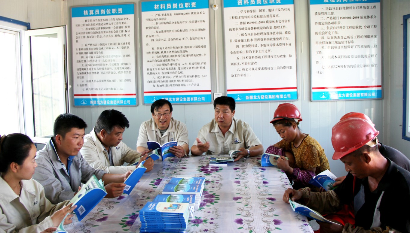 北方建設集團廣廈公司108項目部人員正在學(xué)習安全手冊