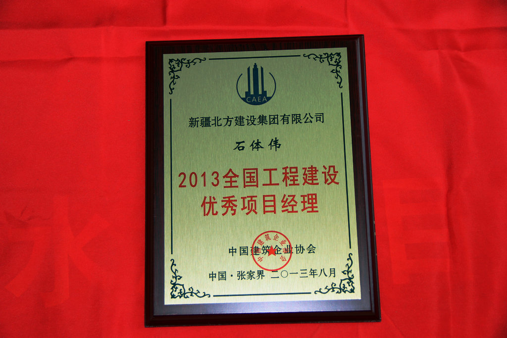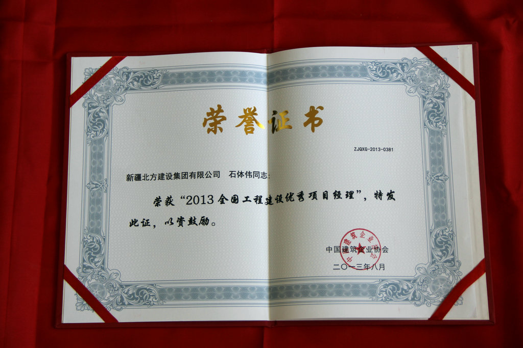 (通訊員 劉婕 周啟航)831日于張家界召開(kāi)的2013中國房地產(chǎn)/建筑業(yè)優(yōu)秀成果發(fā)布會(huì )暨行業(yè)發(fā)展趨勢研討會(huì )上獲悉,新疆北方建設集團路橋分公司石體偉榮獲全國工程建設優(yōu)秀項目經(jīng)理。據了解,“全國工程建設優(yōu)秀項目經(jīng)理”的評選工作,是經(jīng)各行業(yè)、地方建設(建筑、施工)行業(yè)協(xié)會(huì )推薦,由大會(huì )評審委員會(huì )審定,本次共評出全國工程建設優(yōu)秀項目經(jīng)理2,石體偉為我集團公司本年度唯一獲此殊榮的項目經(jīng)理。