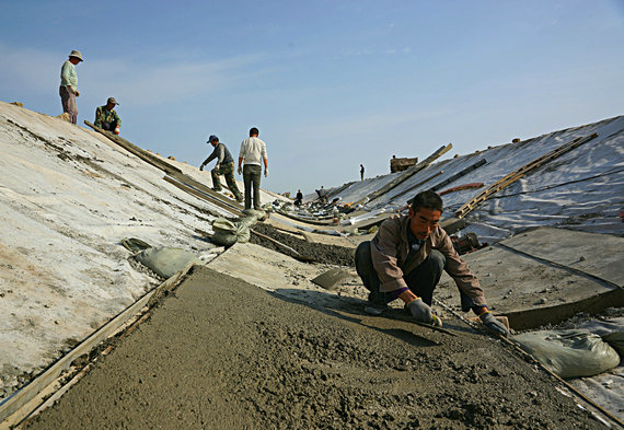 (孟慶忠 王清軍)10月10日,北方建設集團工程項目三部施工隊在打渠道混凝土底板。據了解,由工程