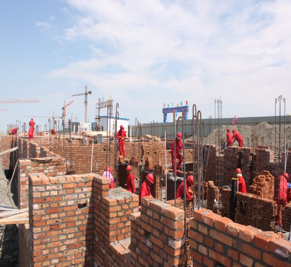626上午,在獨山子眾鑫房產(chǎn)盤(pán)錦路東經(jīng)濟適用房小區16#、19#、22#25#住宅樓的施工現場(chǎng)中,筆者見(jiàn)到施工人員們分別在支模板、綁鋼筋、砌磚塊等不同的施工進(jìn)行中,原來(lái),這里正在舉行熱火朝天的創(chuàng )先爭優(yōu)勞動(dòng)競賽活動(dòng)。