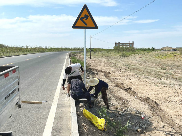 (通訊員 楊靜為進(jìn)一步規范道路交通標志標牌設施,確保標志標牌設置科學(xué)、合理、規范,近日,由三利公司水利施工部承建的胡楊河市陵園配套設施道路工程建設項目完成新增標志牌安裝工作。